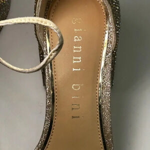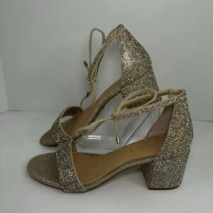 Gianni Bini gold rhinestone block open toed sandals with ankle strap size 8 1/2
