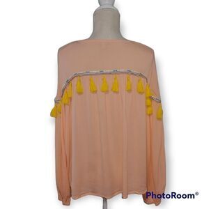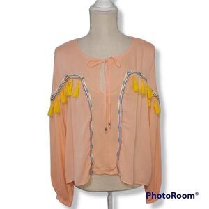 Gianni Bini medium orange long sleeve tassels boho peasant flowy top