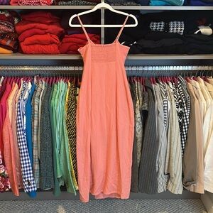 Gianni Bini peach adjustable strap front slit smocked back midi dress size 4