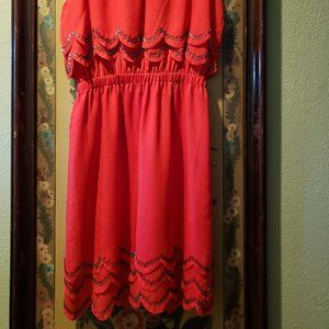 Gianni Bini red scalloped dress with beading along the top and bottom