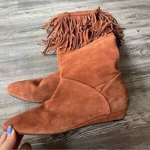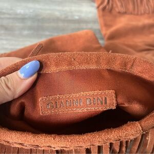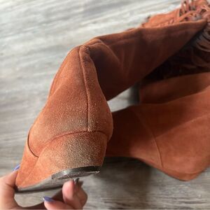 Gianni Bini rust suede knee high tall slouchy fringed boots with 1" wedge