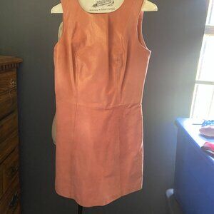 Beautiful peach tone with gold flakes suede-like/leather sleeveless knee length sheath dress