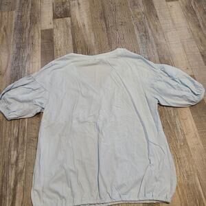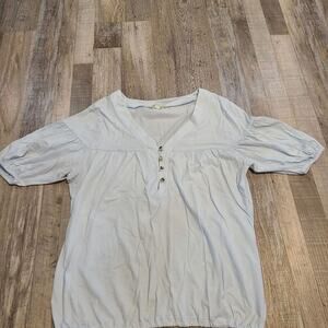 Gianni Bini small womens light blue v-neck partial button down blouse
