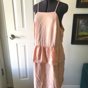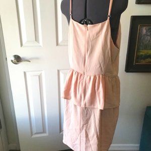 Adjustable straps , peplum ruffle, straight skirt back zipper