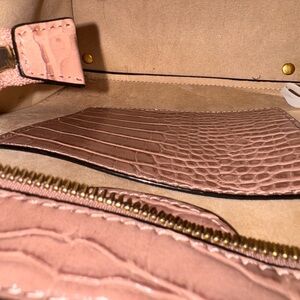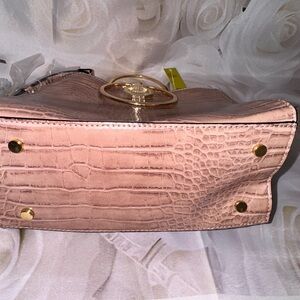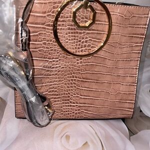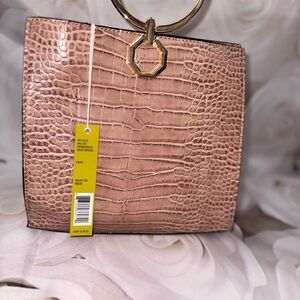 Gianni Bini taupe “Nellie”Crocodile Square bag with Gold hoop Handles nwt detachable shoulder strap