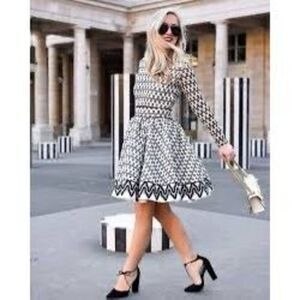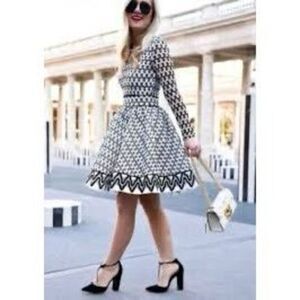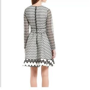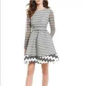 Gianni Bini 4 Long Sleeve Fit & Flare Mini Tea Dress Black White Abstract Twee