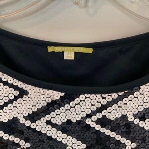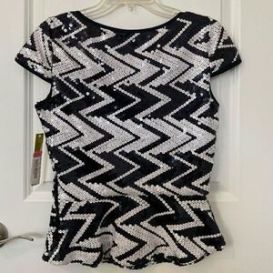 Condition: Brand new with tags. Short-sleeve blouse covered by navy/white sequins in chevron pattern.
