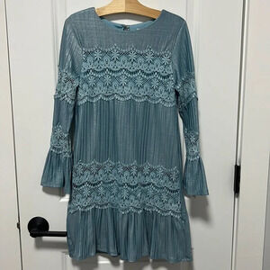 Gianni Bini Girls Blue Long Sleeve Knee Length Round Neck Lace Dress size Medium