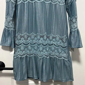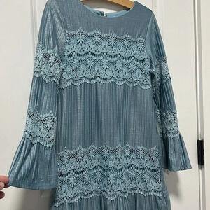 Gianni Bini Girls Metallic Blue Long Sleeve Knee Length Round Neck Lace Dress size Medium