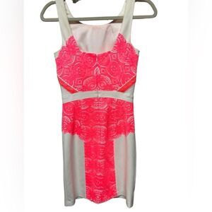 Gianni Bini White Sleeveless Mini Sheath Dress Neon Pink Lace