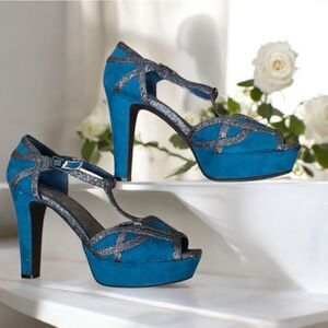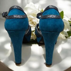 Gianni Bini Women's GB Teal Suede Glitter Platform Pumps Peep Toe 9M Formal Club