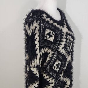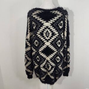 Gianni Binni Black Oversized Aztec Sweater Size Small Fuzzy Eyelash Sweater