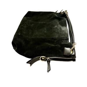 This authentic Gianni Chiarini large tote is a stunning example of Italian design and craftsmanship. Made in Italy, it features a sophisticated combination of rich black suede and smooth leather trim, accented by mixed metal hardware and side zippers for style and function. The top snap closure keeps belongings secure, while the substantial weight and high-quality construction give the bag a luxurious, durable feel.