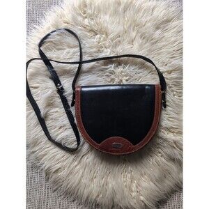 Gianni Firenze Small Mini Two-toned Black Crossbody Italian Leather Handbag Long