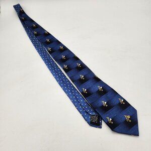 This Gianni Versace tie, crafted from luxurious silk, features an elegant navy and black striped pattern with distinctive gold accents. An elegant choice for formal occasions, it adds a touch of Italian luxury to any ensemble.