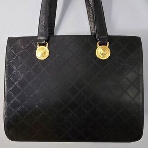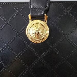 Gianni Versace Black Leather Sunburst Tasseled Tote Bag