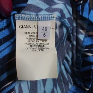 Gianni Versace Collection Blue Patterned Bodycon Stretchy Long Sleeve Top Sz 6