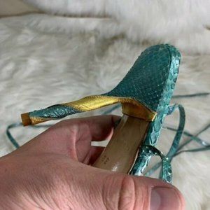 New, unworn! Absolutely stunning! Giving me Britney Spears slave for you vibes. These have no sign of wear at all whatsoever. Gorgeous aqua color python snakeskin. These are so rare to find in this condition!