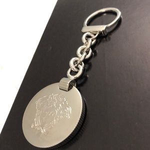 Gianni Versace Medusa engraved metal Keyring. New with original polishing cloth and pouch, cards and Box. Measures: 4.25” L. unisex