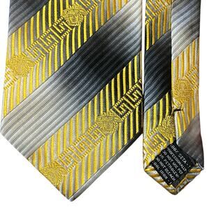 Gianni Versace Stripped Medusa Yellow Gray Silk Twill Tie