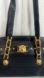 Black nylon with black leather trim, beautiful detail in the silver and gold hardware