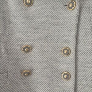 Beautiful Grey 100% Wool Vintage 90s Versus Jacket/Blazer by Gianni Versace. Double breasted with original brass buttons. Excellent vintage condition with intact lining. Size 42. US Sz 8.