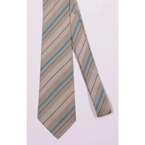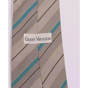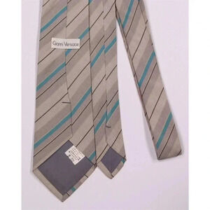 Gianni Versace Vintage 1980's Beige/Aqua Striped Silk-Linen Necktie Tie