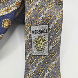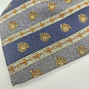 versace tie, medusa head tie, vintage versace silk, 90s luxury tie, baroque fashion, menswear vintage, italian silk tie, Gianni versace tie, vintage versace medusa, designer silk tie, mens luxury fashion, 90s versace tie, italian silk necktie, navy gray gold tie, statement accessory, baroque fashion tie, collector designer tie