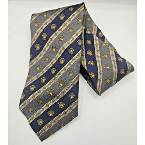 Gianni Versace Vintage Silk Medusa Tie Navy Gray Gold
