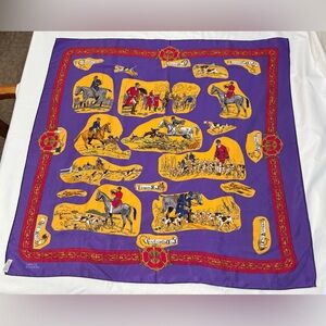 Gianni Versace Vintage Silk Scarf – Fox Hunt Equestrian Theme, Purple 34x34