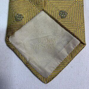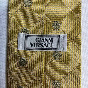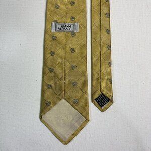 Gianni Versace Vintage Silk Tie – Gold Geometric Medusa Pattern