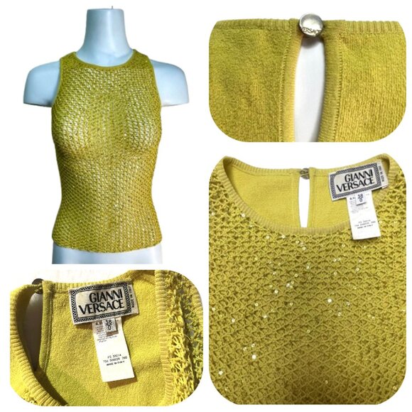 Authentic Gianni Versace sequin knitted sleeveless lime top IT 38 US S. Mint Condition. Chest 17", length 21"