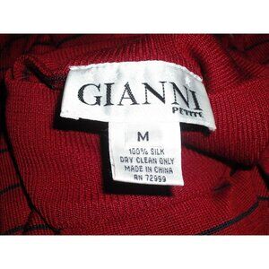 Gianni Womens Red Black Striped Mock Neck Short Sleeve Shirt Size Petite Medium