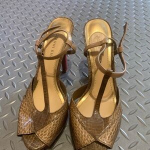 Gianni bini suede tan snakeskin heel with strap spring boho glam party platform
