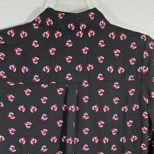 Gianni Bini Black Chiffon Button Down Long Sleeve Tunic Geometric Pattern Blouse