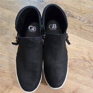 Step into style with these Gianni Bini black sneakers, featuring a sleek silhouette and a contrasting white sole. The soft material and zipper closure offer both comfort and contemporary flair, making them perfect for everyday wear.