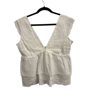 Gianni Bini Boho Eyelet Tiered Sleeveless blouse size M Double V-neck layering C