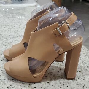 Gianni Bini Genoveen, Beige Open Toe Chunky, Leather Sling Back Heel, Size 7M, Great condition, Couple tiny spots, as pictured, 4.5 heel