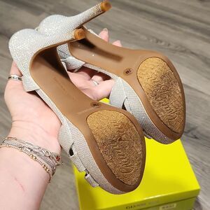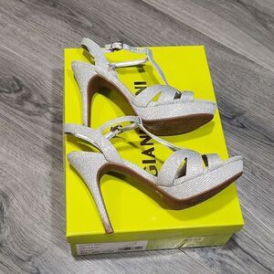 Gianni Bini Helena Silver Glam SPARKLE Heels, worn twice and very good condition. Heels are 4" and slight platform. Great for wedding or night out. Very sexy.