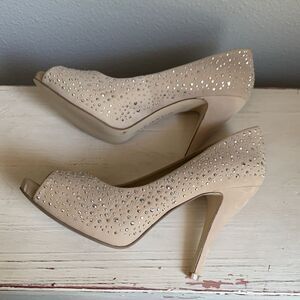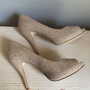 Gianni Bini Nude Peep Toe Heels With Silver Embellishments Size 7.5