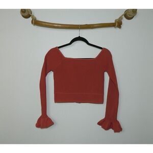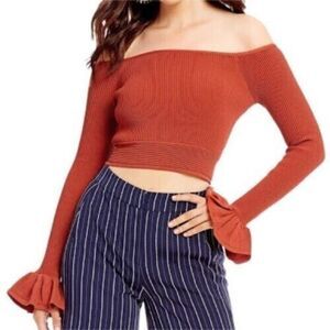 Gianni Bini Knitted Off Shoulder Orange Cropped Top Women's Medium Back Zipper