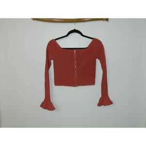Gianni Bini Top Orange Side Medium Off Shoulder Knit Cropped Back Zipper Shirt