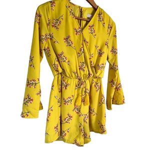 Yellow Gianni Bini Floral romper ( junior L) bell sleeve, in great condition