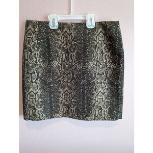 Gianni Bini skirt size 8. Skirt measures 17.5 inches in length from top to hem. Skirt is metallic gold and gray snake skin print