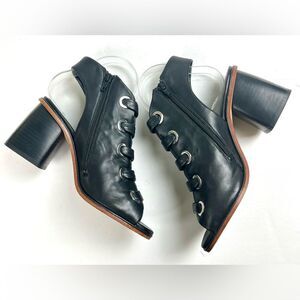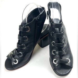 Gently worn Gianni black leather sandals. Step out in style with these chic black leather heeled sandals. Perfect for any occasion, these shoes offer both comfort and elegance. See photos for light wear and measurements.