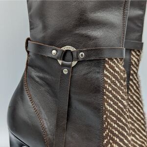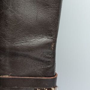 Signs of wear: Scratches and scuffs on leather. Scratches on heel and wear on bottom of boots.