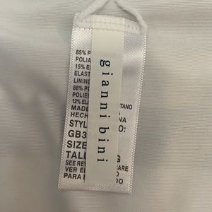 Bandeau style top that ties in the back. Removable shoulder straps included. Padded cups sewn in. Size large. White and sage green.