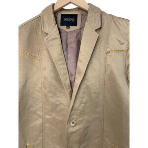 Giannii Mens 2XL Beige Satin Blazer Jacket Two-Button Lined Slim Fit Gold 8003