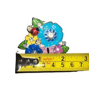 Giant Bright Flowers With Ladybug Rhinestone Necklace Pendant