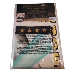 Personalized giant banner kit . Measures 65 x 20 inches and includes 120 adhesive gold letters and numbers. Customizable with stars and spotlight theme, ideal for proms or formal events.